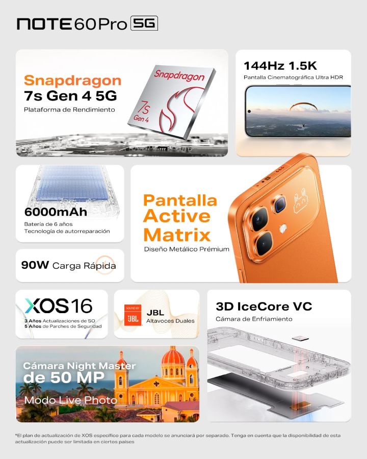 Con una propuesta que integra potencia de última generación, innovación en diseño y tecnologías enfocadas en el usuario moderno, el NOTE 60 Pro 5G se posiciona como una de las apuestas más ambiciosas de la marca en la región.